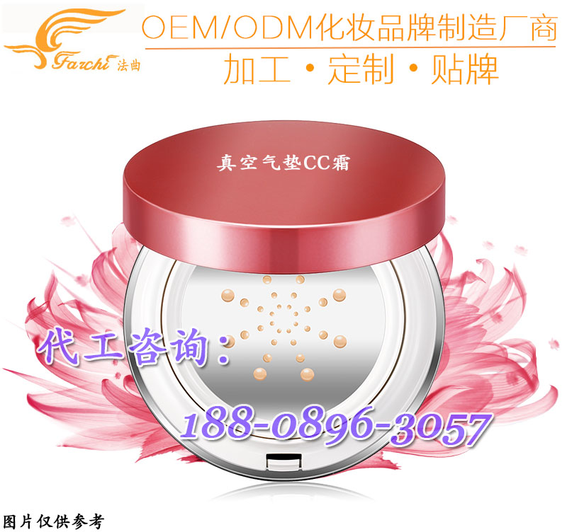 真空气垫CC霜代工|电商渠道真空按压气垫BB霜OEM贴牌加工-备案生产,提供三证,可来样打板。广州市法曲化妆品有限公司有研发队伍,可按我们的配方生产,也可按您想要的效果来调配。立即来电:18808963057 高川 经理