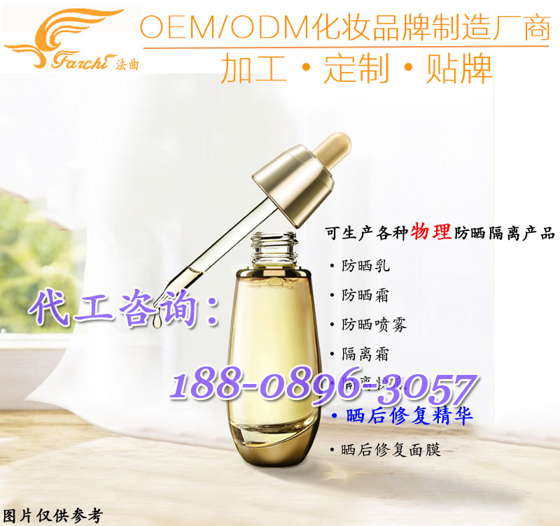 晒后修复精华OEM,电商/微商渠道晒后修复精华贴牌加工,系列晒后修复产品代加工-备案生产,提供三证,可来样打板。广州市法曲化妆品有限公司有研发队伍,可按我们的配方生产,也可按您想要的效果来调配。立即来电:18808963057 高川 经理